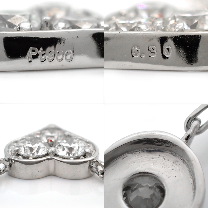 | 詳細 | ダイヤモンド:0.30ct 重量:2.5g ペンダントトップ取外し不可能 ※ダイヤモンドには、10倍のルーペで確認できる天然特有のインクルージョンがあります。 ※新品仕上げ済みですが、Pt900/Pt850にはごく僅かなくすみや汚れ等があります。 |