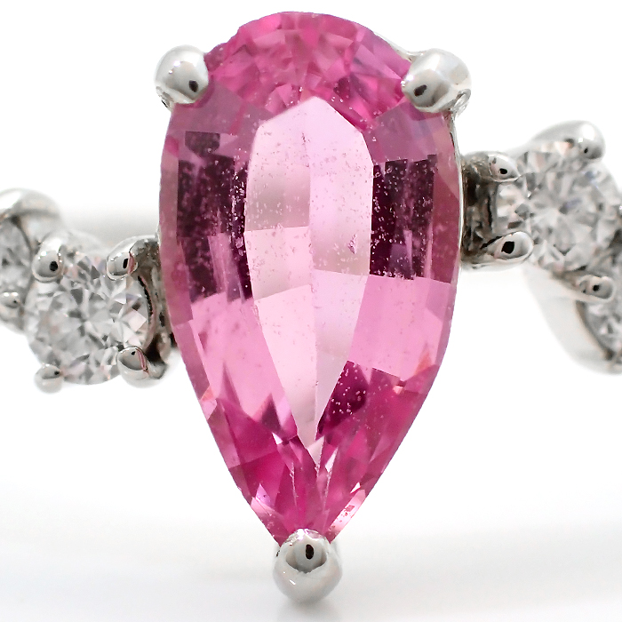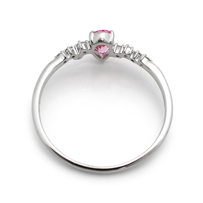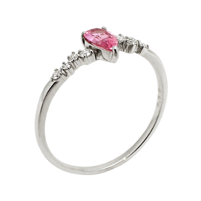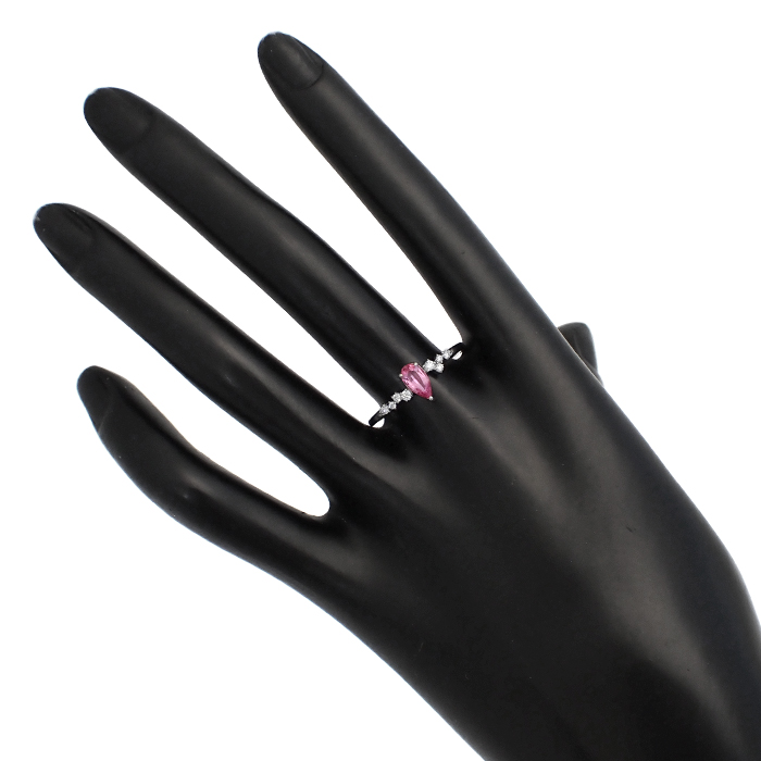 Pt950 ピンクサファイア 指輪 22号 しずく ティアドロップモチーフ シルバーカラー