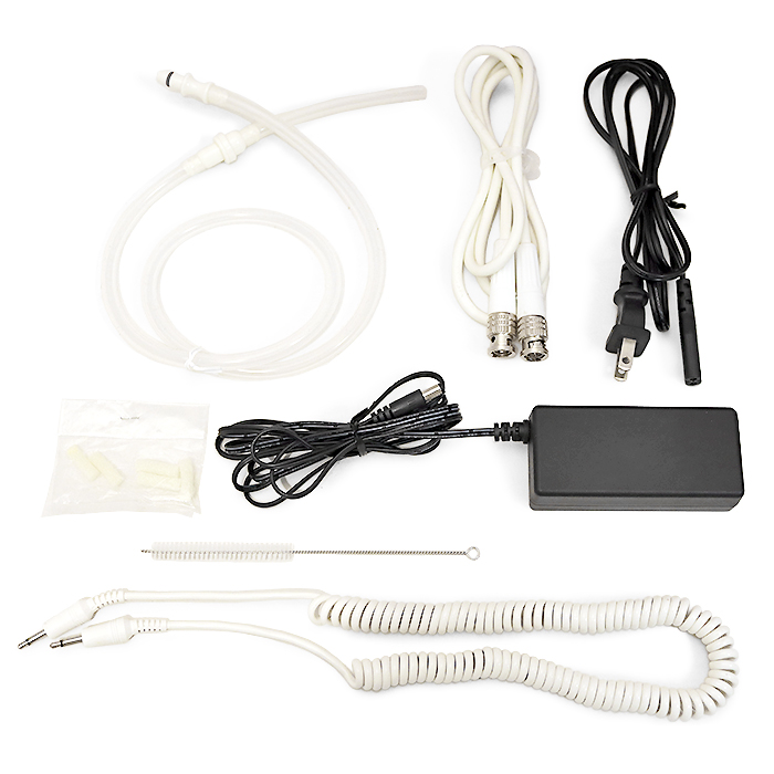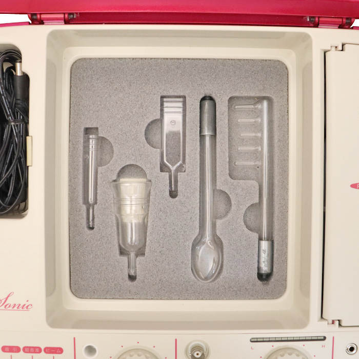 | 付属品 | ACアダプター・吸引アダプター3種・清掃ブラシ・フィルター・クリアホース・プロープ・超音波コード・ビーム筒・ガラス管2種・ビームコード・イオン導入器(電池なし)・取扱説明書 |