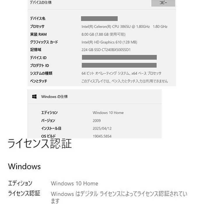 | 詳細 | ・WPS Office ・KINGSOFT Internet Security 20 ・初期動作不良のみ返品対応します。(商品到着後、7日間以内) ・OSライセンスはデジタル認証。 ・クリーンインストール・アップデート済の本体ですが、ご自身で行う場合は自己責任でお願いします。 ※中古品の為、写真撮影部分以外にも細かなキズや汚れがある場合がございます。 ※店頭展示品の為、多少の小傷・汚れなどがつく場合があります。 ※箱など付属品がある場合、キズや汚れがあるものとお考え下さい。 ※画像の色の見え方は、お使いのモニターやディスプレイによって異なります。 |