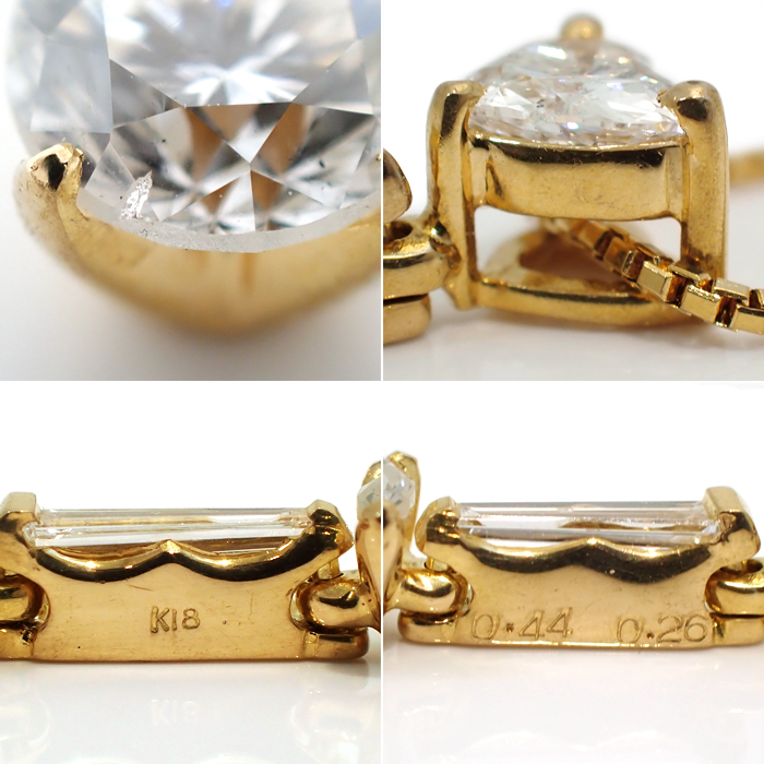 | 詳細 | ダイヤモンド:0.44ct 0.26ct 重量:2.7g トップ:取外し不可能 ※ダイヤモンドには、10倍のルーペで確認できる天然特有のインクルージョンや僅かな欠けがあります。 ※K18に僅かな小傷やくすみがあります。 |