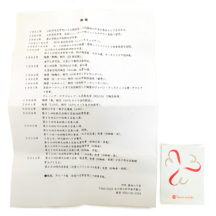 | 作家 | 四代 徳田八十吉 |
