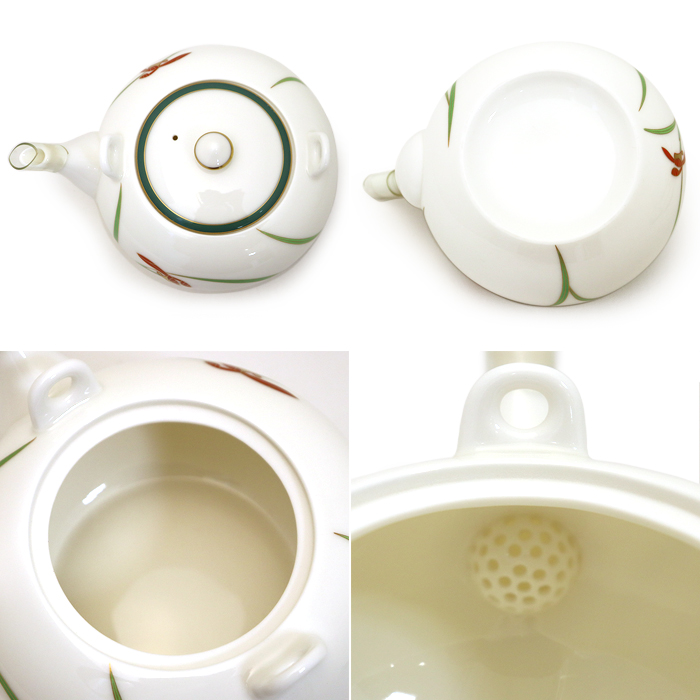 | 状態 | 未使用品ですが長期保管の為、ごく僅かな底汚れやスレ・金彩に変色、製造時からの色飛びなどがあります。 また、急須の持ち手部分の塗装剥がれや傷などがあります。 ※付属の箱には汚れやシミ・ヤケ・テープ跡などがあります。 |