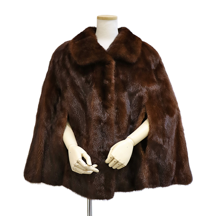 クレールドリュヌ エンバ(Clair de Lune by EMBA) マホガニー ミンク ファー 毛皮 ケープ コート アウター Mサイズ ブラウン