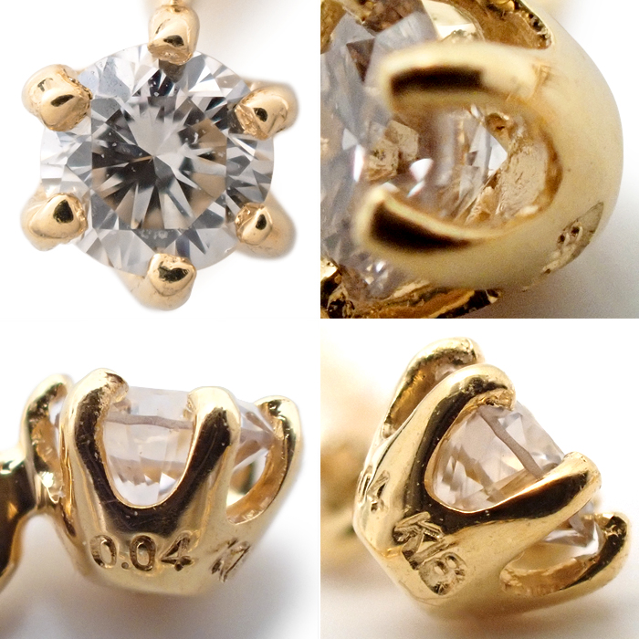 | 詳細 | ダイヤモンド:0.06ct/0.04ct 重量:1.4g トップ取外し不可能 ※ダイヤモンドには、10倍のルーペで確認できる天然特有の僅かなインクルージョンがあります。 ※K18には肉眼では分からない程度のごく僅かな小傷があります。 |