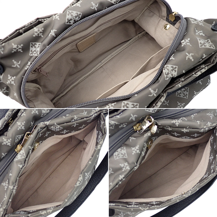 | 詳細 | 開閉式:ダブルファスナー開閉 外側:あおりポケット×2(前側ポケット内にオープンポケットあり) 内側:ファスナーポケット×1/オープンポケット×2/ 持ち手:約37cm ショルダー:最長約122cm ※画像の色の見え方は、お使いのモニターやディスプレイによって異なります。 |