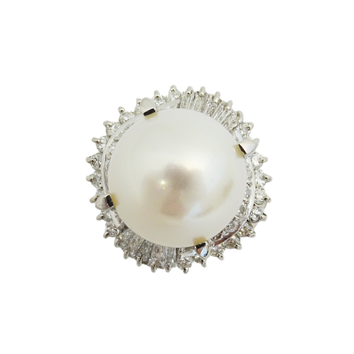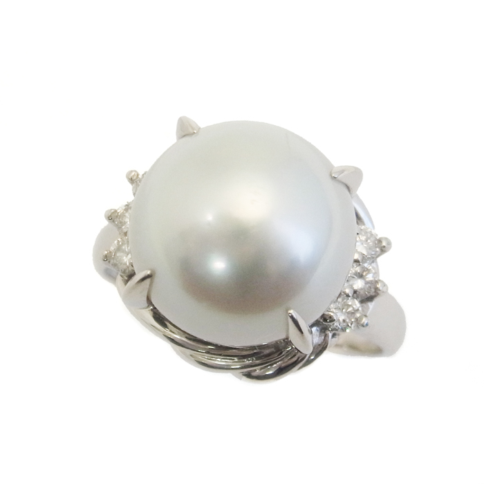 Pt900 パール ダイヤモンド 指輪 9.5号 真珠 シルバーカラー