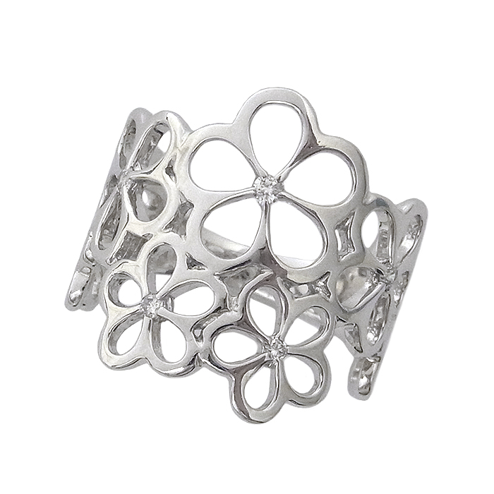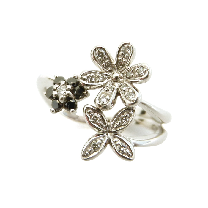K18WG ブラックダイヤモンド 指輪 フラワーモチーフ 13号 新品仕上げ済 ホワイトゴールド