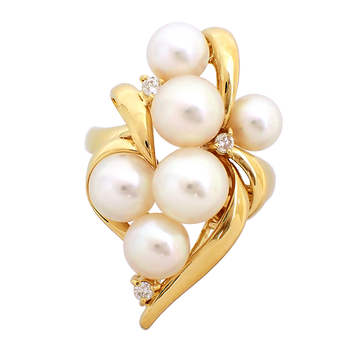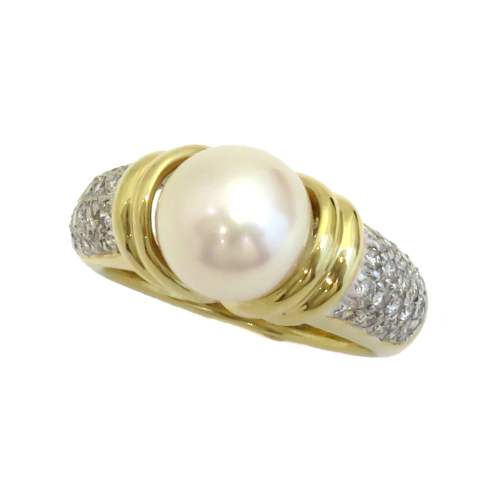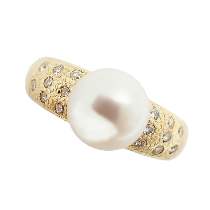 K18 パール 指輪 ダイヤ入り 11号 ソーティング付き ゴールドカラー