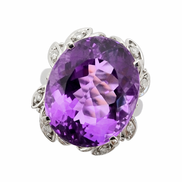 Pt900 アメシスト 指輪 リング 14.5号 大粒 紫水晶 新品仕上げ済み シルバーカラー
