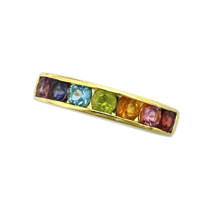 K18 マルチストーン 指輪 9号 アミュレット 七色 新品仕上げ済み イエローゴールド